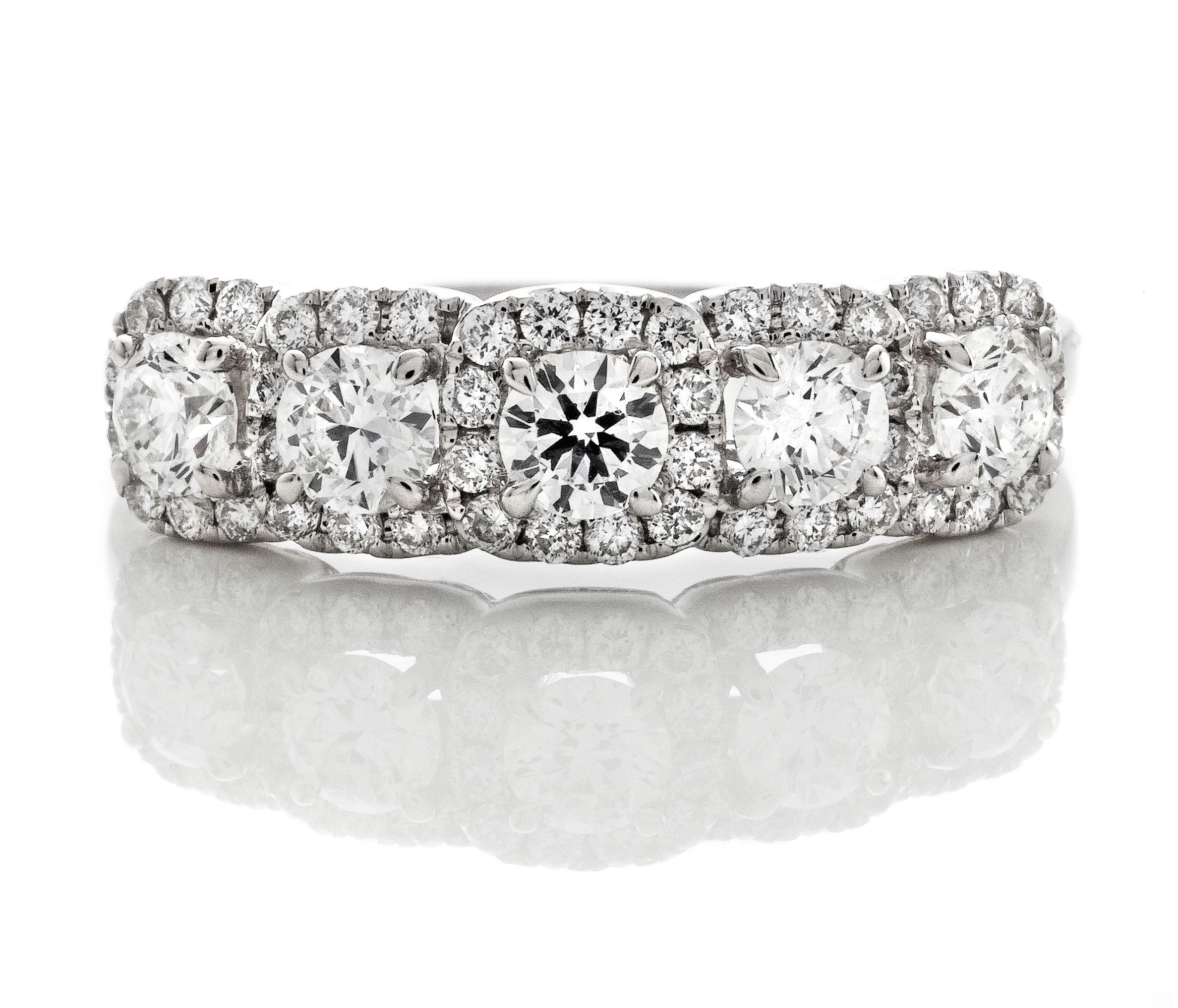 This band features five round Forevermark diamonds, beautifully set in 18K white gold. Band are available in a range of sizes, qualities and metals.
