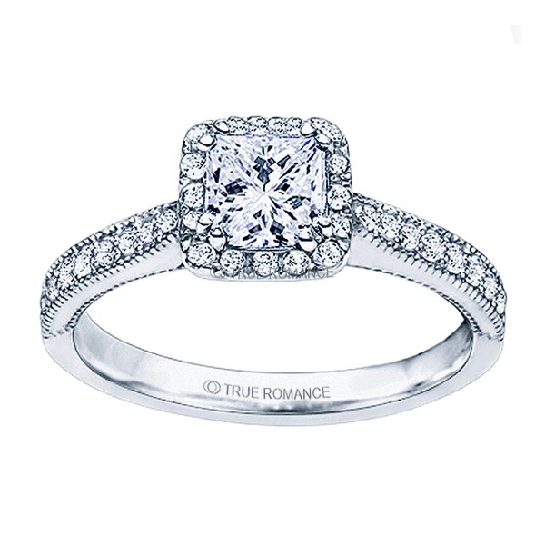 An elegant design, this diamond engagement ring showcases a prong-set diamond halo that crowns the center stone. This style accommodates various center stone sizes & shapes. Available in Platinum, as well as 18K and 14K White, Yellow or Rose Gold.